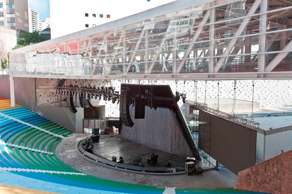 Execução do edifício garagem com 05 (cinco) pavimentos, a reforma da Concha Acústica, com a construção de novos camarotes com 02 (dois) pavimentos e camarins com 01(um) pavimento, assim como a instalação de nova cobertura, denominada de Passarela Técnica. Os serviços englobam uma área construída de reforma de 7.189,84m² e uma área construída de ampliação de 20.105,56m², totalizando 27.295,40m².